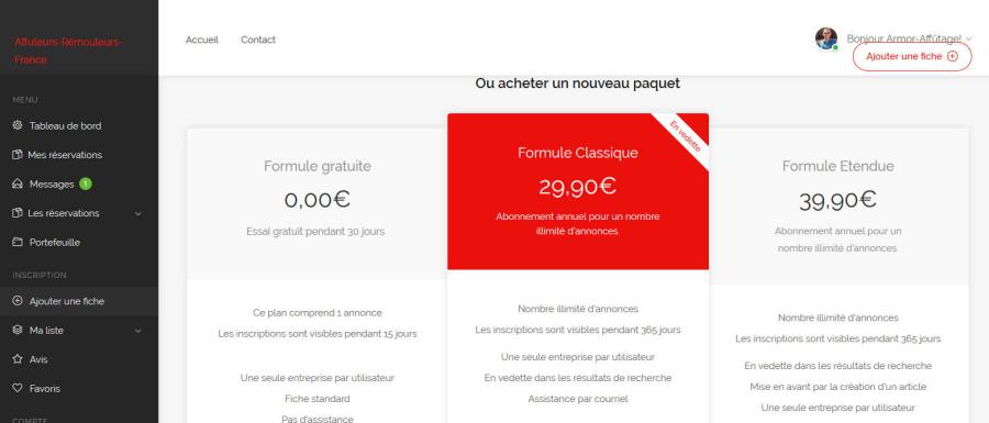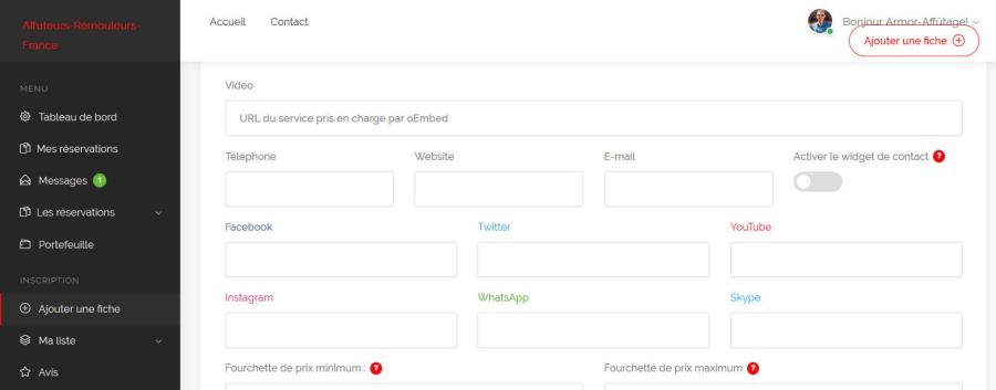 Cliquer sur votre choix et débuter le renseignement de votre fiche.