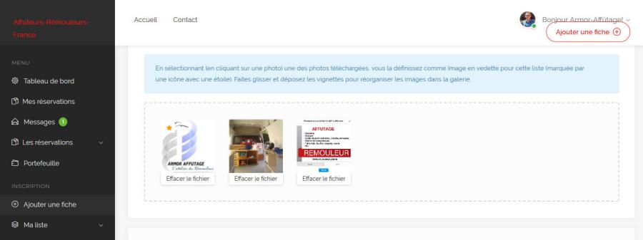 Nota : si 3 images maximum, celles ci seront positionnées dans la fiche (bas), si plus de 3 images, celles-ci seront positionnées en haut de la fiche.