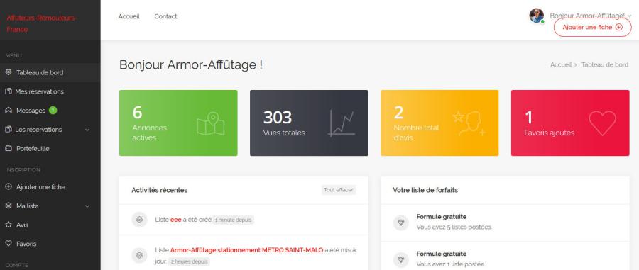 Le tableau de bord vous affiche les informations suivantes :