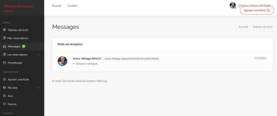 3 - Menu "Messages" => boite de réception messagerie interne