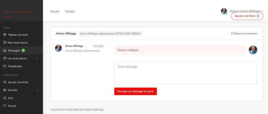 4.5 - Menu "Messages" => boite de réception message privé => pour répondre, renseigner votre texte et envoyer