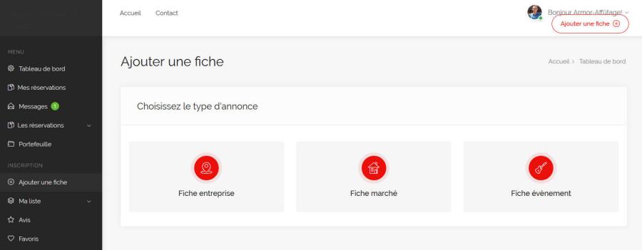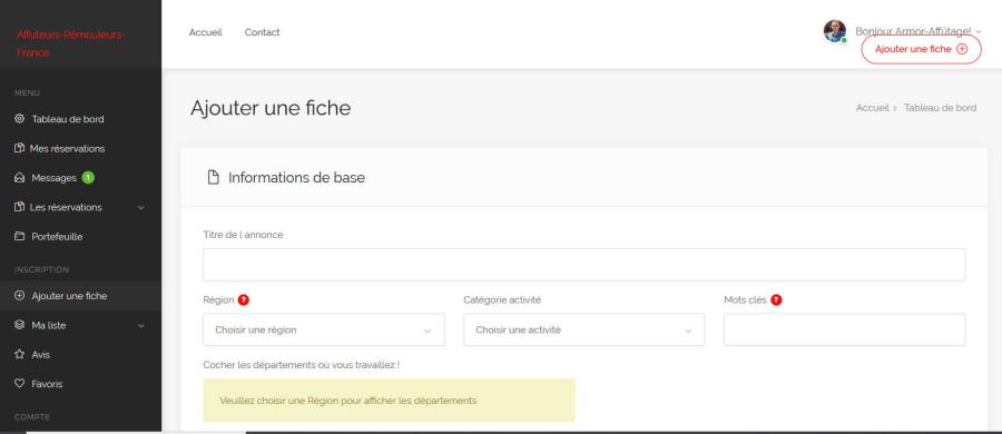 Cliquer sur votre choix et débuter le renseignement de votre fiche.