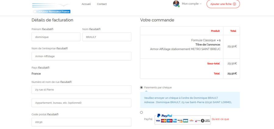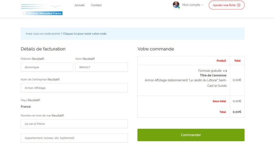 Cliquer ensuite sur commander, vous revcevrez ensuite une facture par mail (sous 24h00)