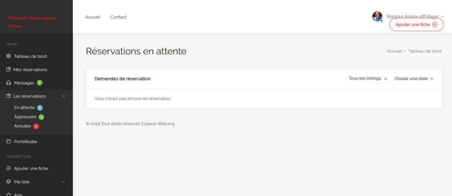 5 - Menu "Les réservations" (non activé) => aucune information