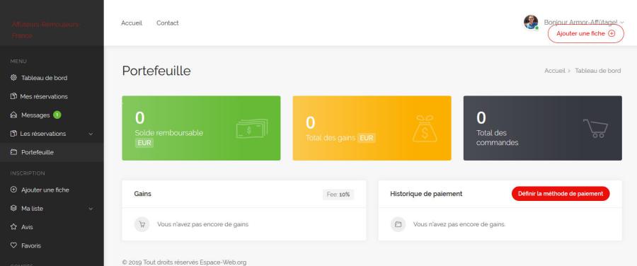 1- Menu => "Tableau de bord"